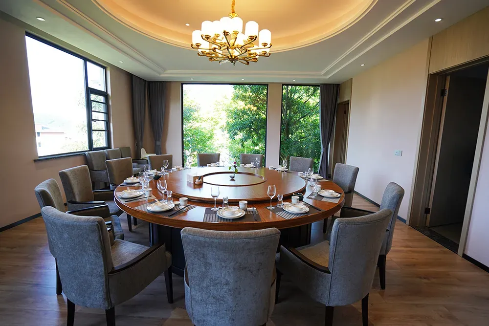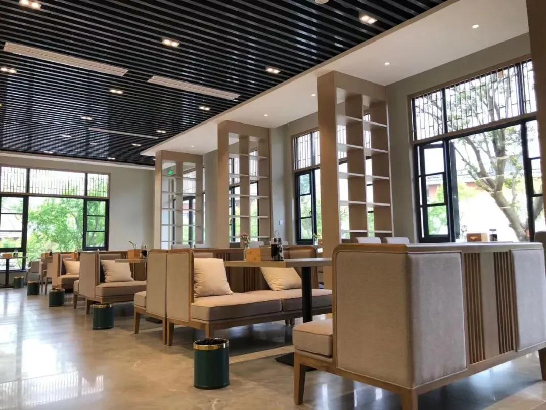 餐饮楼里,有餐饮包厢、茶室、咖啡吧,住店期间的早餐、午餐、晚餐和下午茶等用餐需求,这里都可以满足。