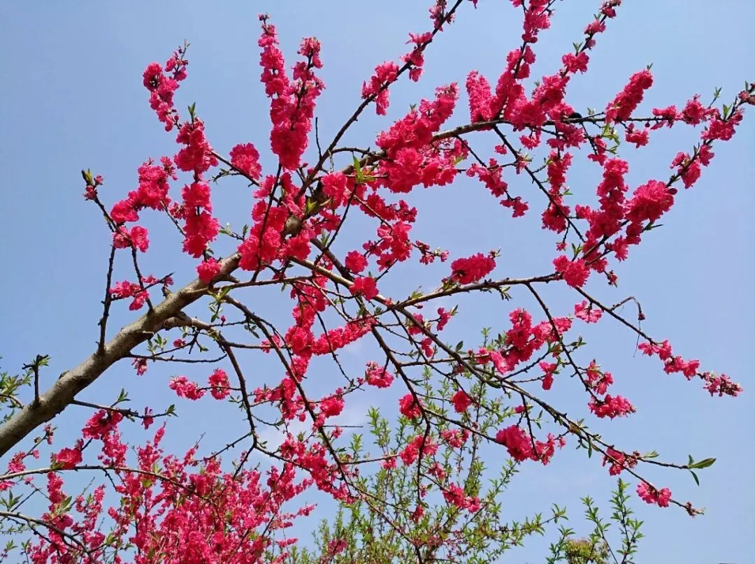 千亩桃园铺展在田野间。桃花密密匝匝,粉艳花朵缀满枝头。田埂曲折,连接着成片桃林。新麦泛着青嫩,与粉色花海相映。农家屋舍隐在林间,白墙黛瓦。晨露沾在花瓣上,晶莹剔透。蜂群穿梭花间,嗡嗡轻响。阳光洒下,暖意融融。风过桃园,花影晃动,香气弥漫。远处田垄延伸,与天际相接。每一朵桃花都尽情绽放,把春日的明媚与质朴,写满这片广阔的田野。