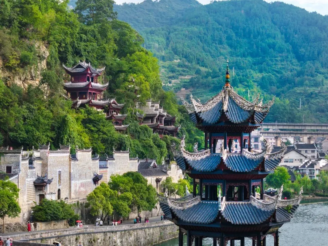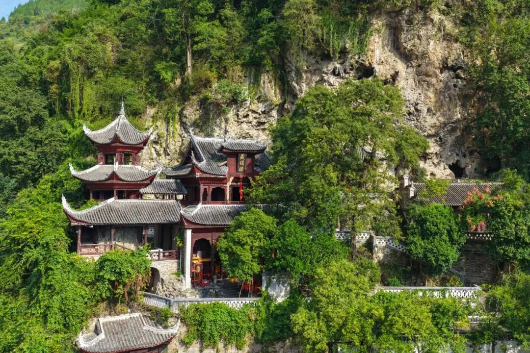 青龙洞:中国南方悬空寺,儒道佛三教交融,依山而建藏于悬崖,俯瞰㵲阳河绝美风光。