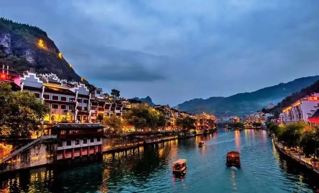 水上游船:乘船游㵲阳河是镇远夜游的核心体验,也是解锁古城夜景的绝佳方式。航程约40分钟,沿途可观赏两岸璀璨灯光秀,沉浸式观看大型山水实景演艺《㵲水月明》——演员身着古装,乘船演绎王阳明讲学、异域商贾往来等场景,结合现代声光电技术,将明朝镇远的繁华盛景娓娓道来,让游客在舟行碧波间触摸千年历史余温。