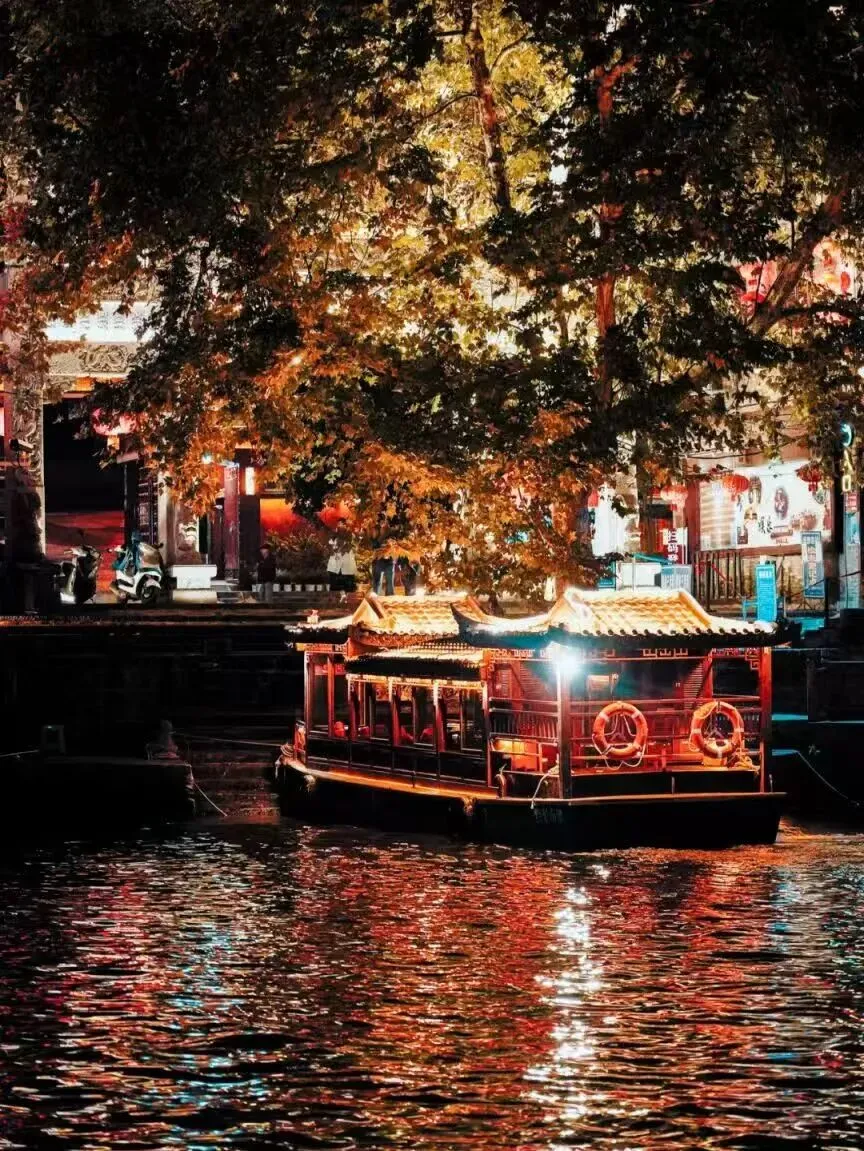 2.㵲阳河夜游推荐乘船,灯光映着山水,美如画卷