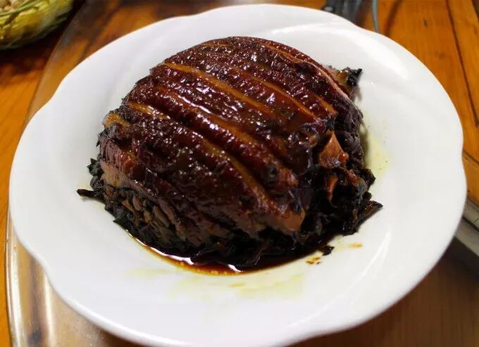 道菜扣肉:陈年道菜+肥瘦相间的五花肉蒸制,肉香醇厚,肥而不腻,越嚼越香。