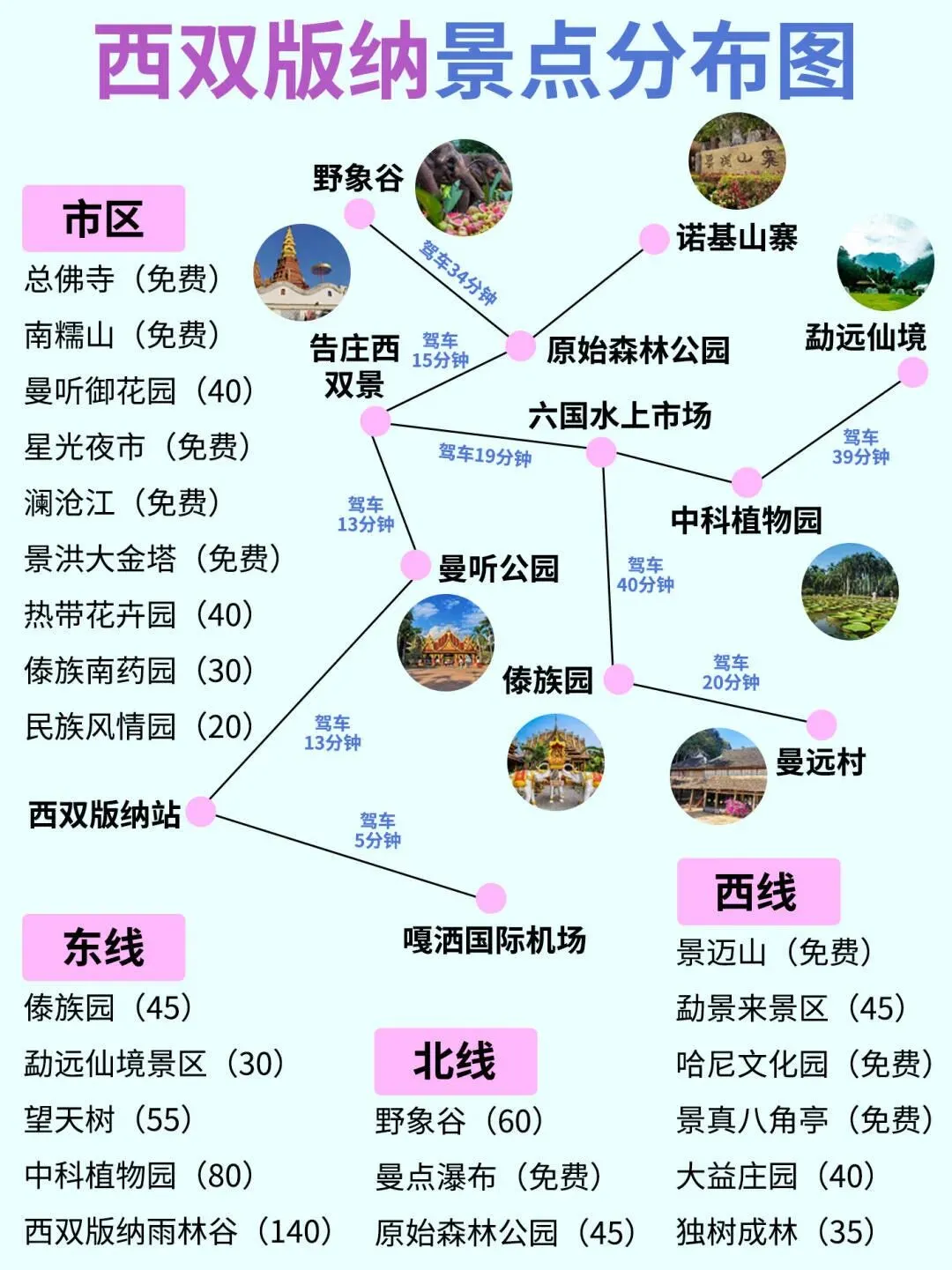 - 必去:告庄夜景、植物园夜游、望天树、南糯山。