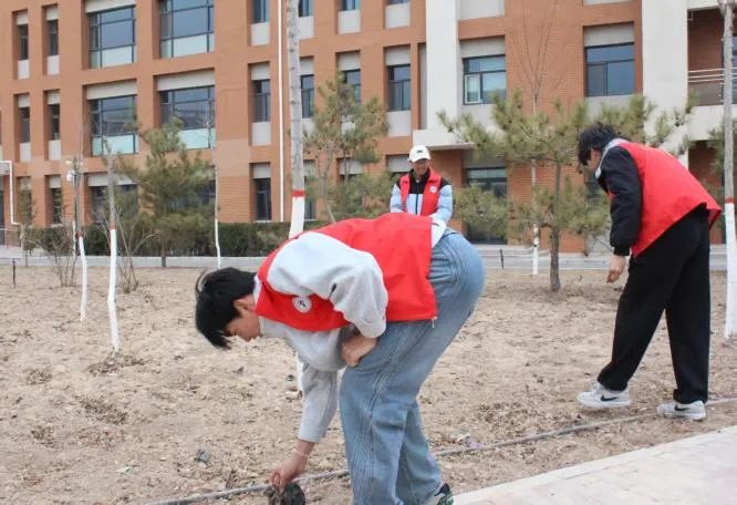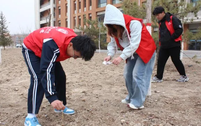志愿过程中,同学们相互配合、干劲十足,忙碌的身影成为校园里一道亮丽的风景线。经过一番辛勤劳作,校园绿化带变得干净整洁,歪斜的小树苗尽数挺立,校园环境焕发出清新生机。志愿者们虽满身尘土,却笑容满面,用实际行动诠释了“奉献、友爱、互助、进步”的志愿精神。