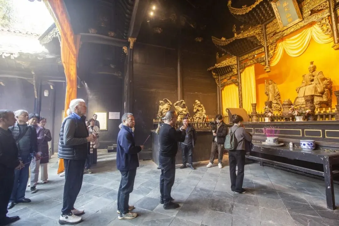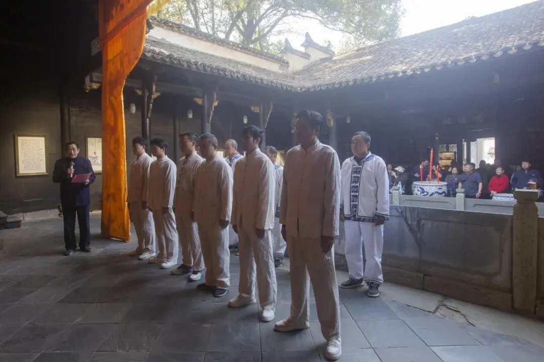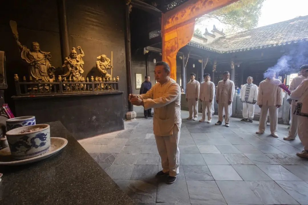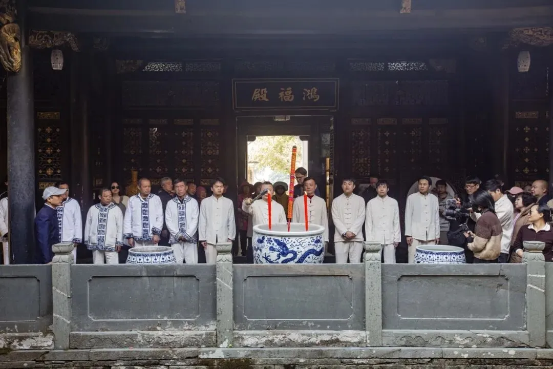 上午10:48,祭祀窑神童宾仪式在风火仙师庙正式举行。古人曾以“风火名仙为殉窑,博得一身烟共碧,至今青气总凌霄”赞颂窑神童宾,著名督陶官唐英也在《陶冶图说》中记载过景德镇窑工“祀神酬愿”的传统。多年来,古窑景区窑工始终坚守并传承着景德镇瓷业窑神“信俗”这一非物质文化遗产。