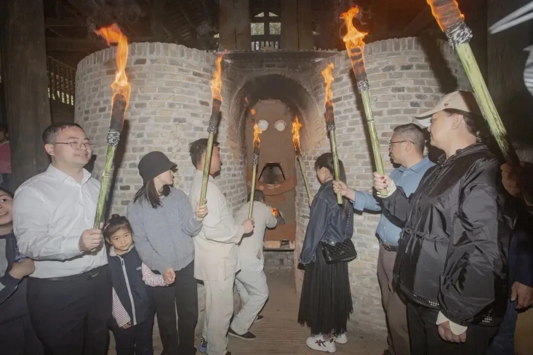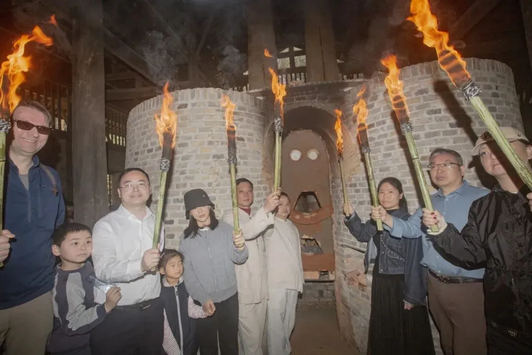 随后,烧窑工匠与嘉宾游客共同传递烧窑神火,在万众期待中,烧窑把桩师傅邬建平宣布馒头窑复烧点火。熊熊窑火燃起,也让现场所有人真切感受景德镇陶瓷非遗的活态魅力。