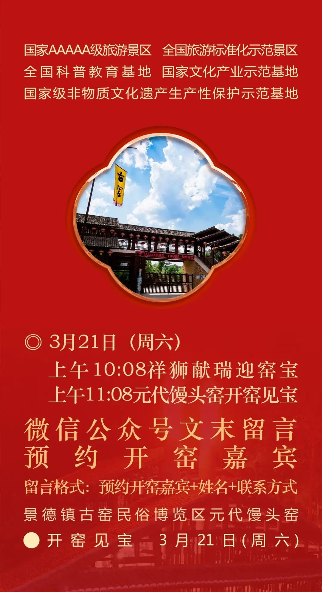 上午11:08,元代馒头窑复烧点火活动举行。国家文博研究馆员、景德镇古窑文化研究院院长周荣林致辞表示,全国两会期间,3月11日,中国新闻社出版的《中国新闻》以专版的形式专门报道了景德镇古窑民俗博览区,专版的题目是《古窑涌动文博热潮传承非遗千年瓷韵》,副标题是“《景德镇古窑——千年瓷都‘活’的博物馆》荣获全国非遗进景区‘五好’典型案例”。本次点火烧窑活动,是景德镇古窑景区这座千年瓷都“活”的博物馆常态化的非遗传承活动,也是深受广大游客喜爱的体验性文旅活动。