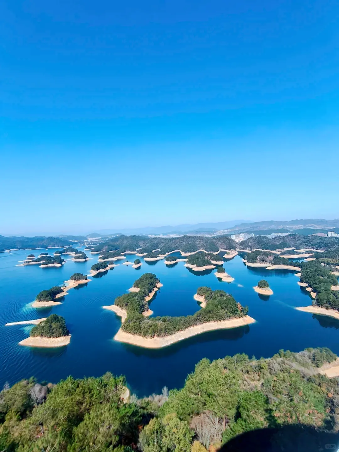 山水版天空之镜,岛屿星罗棋布,适合度假休闲,乘船游湖惬意十足。