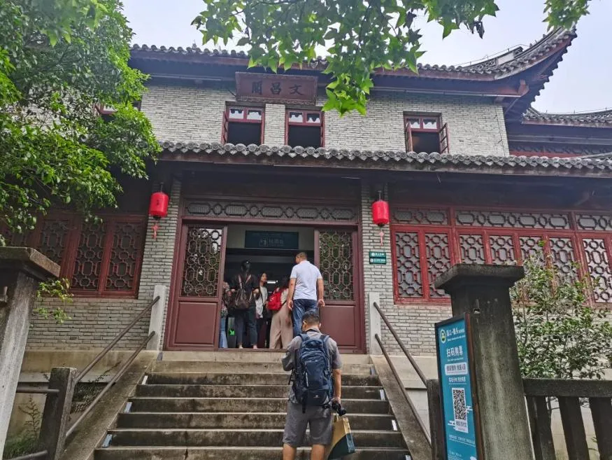 文昌阁,又称乐亭,据资料记载文昌阁始建于清雍正九年(1731年),最初是溪口“文昌会”、“文武会”、“锦溪书斋”诸会文人学士聚会的地方,内有“文昌帝君”像,故得名文昌阁。1924年蒋介石出资重建,次年竣工,成为其私人别墅和藏书楼。1927年蒋介石与宋美龄结婚后,二人常回乡在此居住。1939年12月12日,文昌阁不幸被侵华日军飞机炸毁。1987年,国家拨款在原址按原貌重建,重现这一历史建筑。文昌阁占地面积500平方米,建筑风格独特,块石垒台,青砖砌墙,飞檐翘角,梁架雕人物花鸟,廊饰花窗,阁顶悬红木宫灯,展现出浓厚的中国传统文化韵味。登阁凭窗远眺,青山绿水、市井烟火尽收眼底,景色迷人。