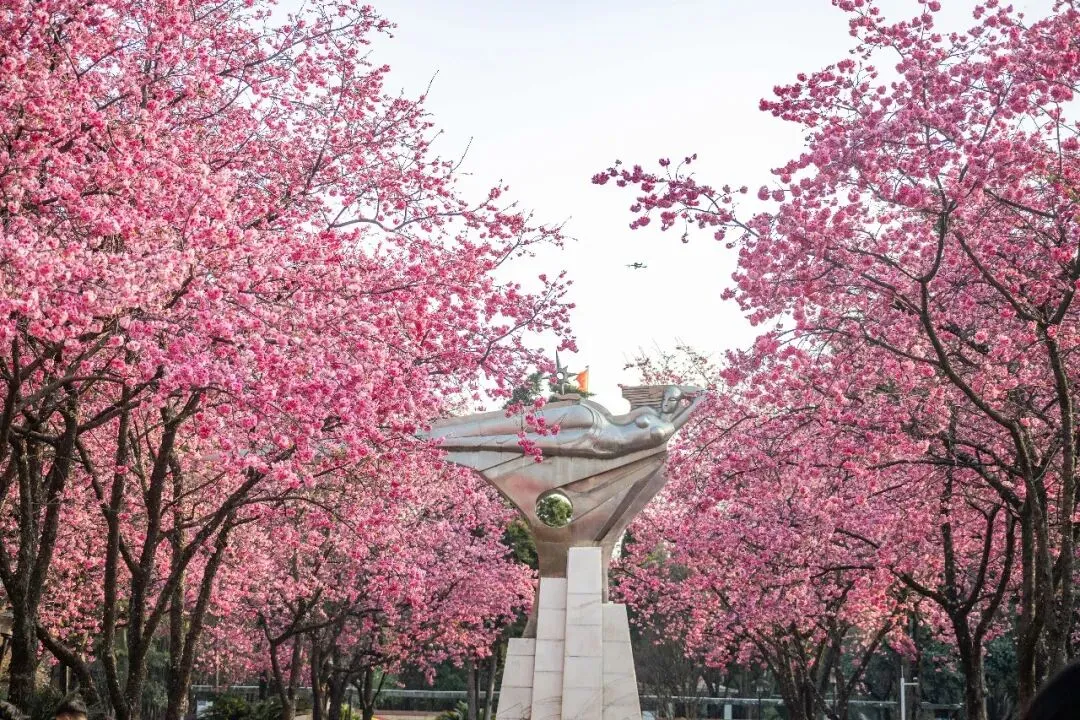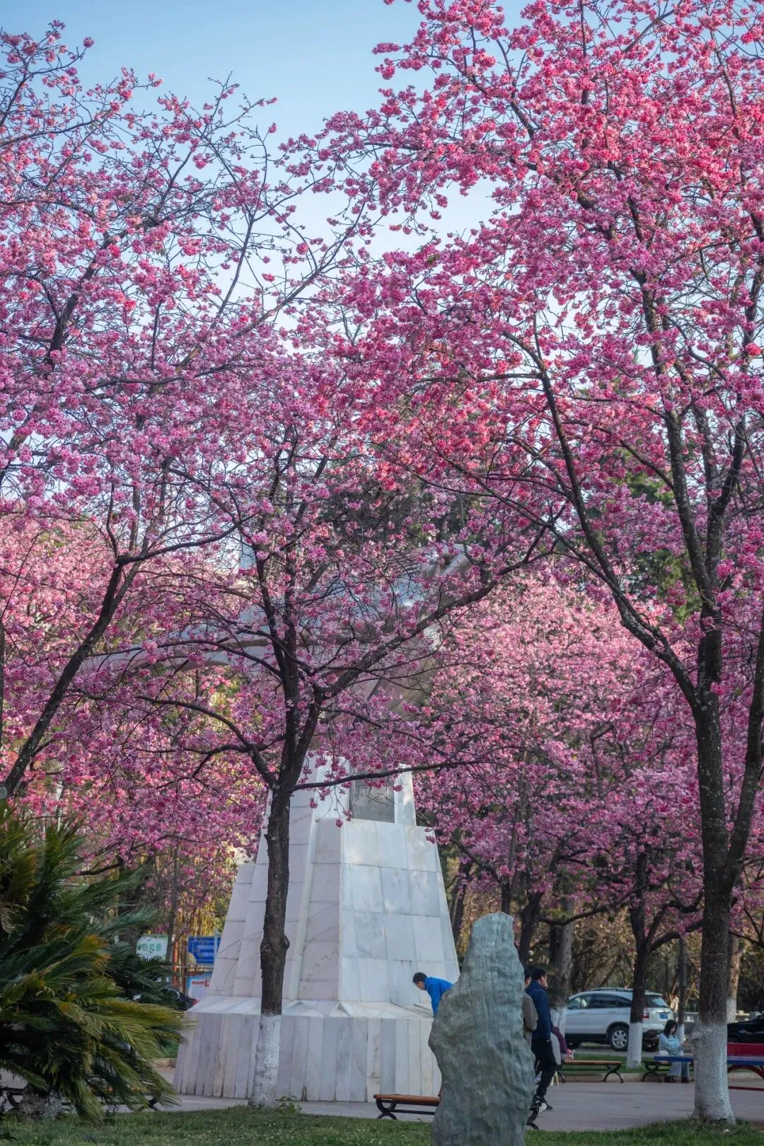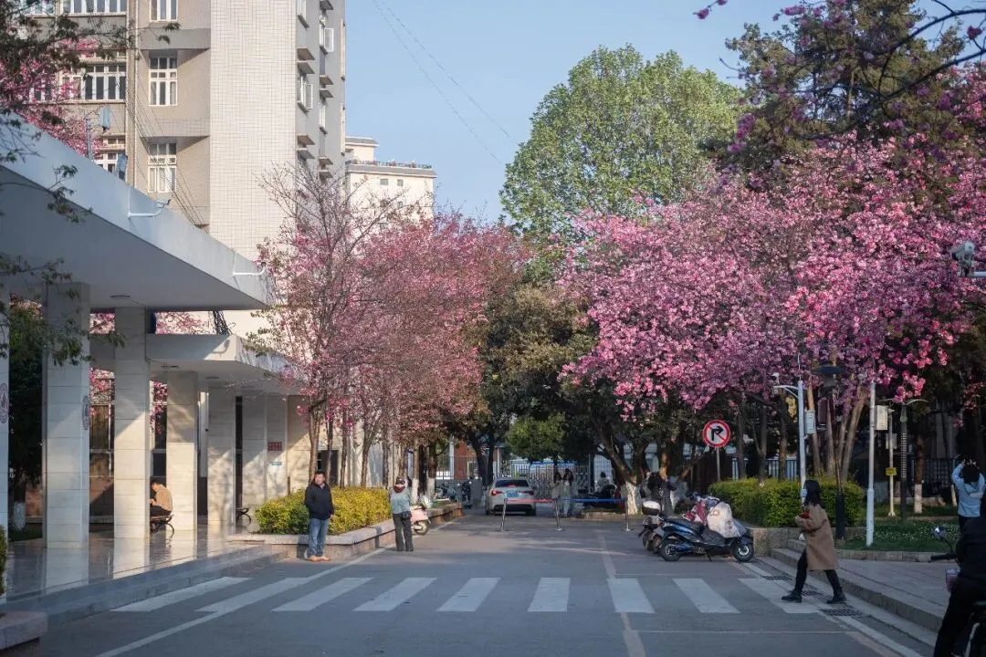 一直以为大学都对外封闭?昆工莲华校区全程对外开放,校外人员可随意进入,不用预约、不用登记、不用刷脸,轻松实现校园赏樱自由。