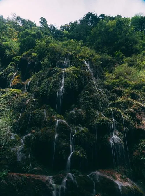 这个峡谷全长四十多公里,但开放的这一段已经够你走的,漂流的话大概两个多小时,沿途瀑布一个接一个,不是那种隔着几百米远远看的,是你坐着皮筏子直接从瀑布下面穿过去,水劈头盖脸打下来那种,夏天去最合适,热是热,但就是要这股水汽才过瘾。峡谷两侧的植被密得不行,全是那种没人管自己长出来的野生状态,藤蔓垂下来,石头上长着厚厚一层苔藓,空气里都是湿的,这种湿不闷,是山里特有的那种凉气。