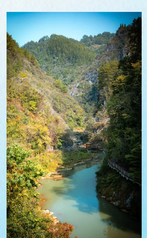 路边有几个小村子,房子都是木头和石头搭的,屋顶上长着草,不是那种刻意保留的古村落,就是真的还有人住,院子里晒着玉米,狗在门口趴着,看见人也不叫,这种状态你在城市周边的景区已经很难见到了。河水很清,能看见底下的石头,水流不急,有些地方形成小水潭,当地小孩在里面游泳,也没大人管,这股子野劲儿是现在城里孩子完全没有的东西。最好的时间是下午四五点,光线开始变柔和,山的颜色从青灰色变成暖黄色,整个画面的调子就出来了。