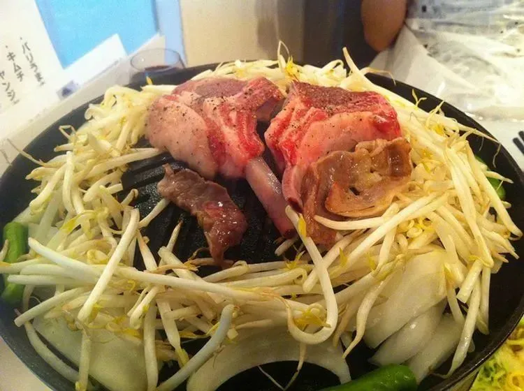成吉思汗烤肉,是北海道和岩手县的地方美食。这是道使用中间部位凸起的特制烤锅,将羊肉和蔬菜一起调理的日本料理。首先将羊肉放在烤锅的中心位置,等到肉汁流下之后再将蔬菜放到锅边吸取肉汁。