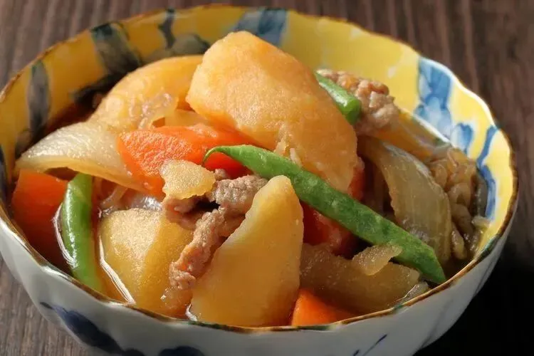 是将马铃薯和肉片一起放入酱油和糖混合调制的酱汁中烹煮的一道典型日本传统家庭料理。有时也会加入胡萝卜和蒟蒻丝。