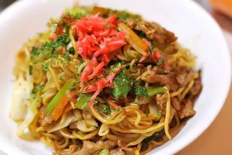 是将面条、猪肉、高丽菜、豆芽菜和其他配料一起翻炒,然后再淋上伍斯特酱(又称辣酱油或乌醋)的一道面食料理。日式炒面有时也会加上红姜酱菜或海苔末来提味。您可以在露天摊位或什锦烧餐厅,甚至在便利商店找到这道料理。