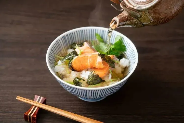 就是将热茶加在白饭上的料理,通常是用餐的最后一道餐点。因为味道非常清淡清香,即使已经吃得很饱也没问题。饭上通常还会洒上,如:柴鱼、明太子、鲑鱼...等的配料。在居酒屋或其他餐厅,都可以吃到茶泡饭,就算是茶泡饭即食杯也是非常美味。