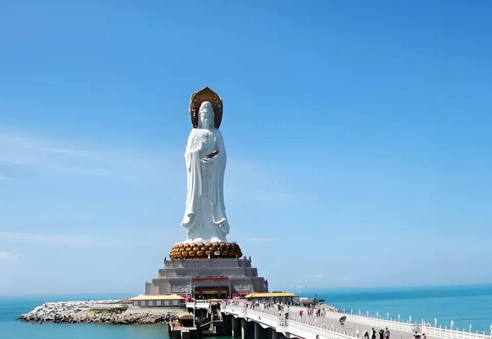 1. 南海观音立像33米高的铜铸观音像面朝东海 每日清晨第一缕阳光会穿透佛首 形成“佛光普照”奇观