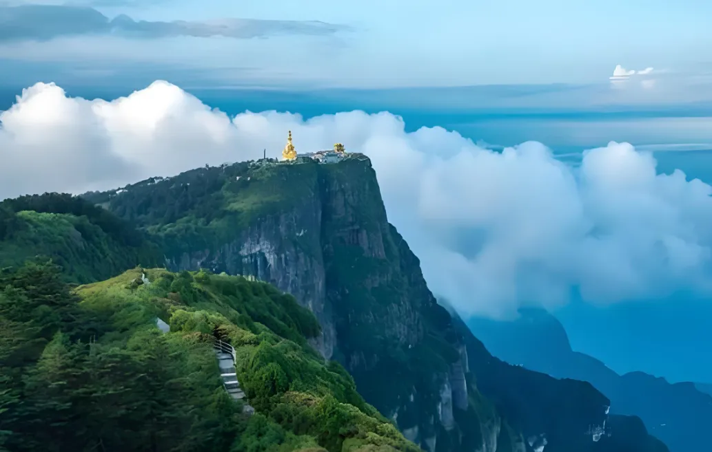 1. 金顶十方普贤像全球最高金佛(48米)在日出时分会反射出金色光芒 若遇云海 佛像仿佛悬浮于仙境