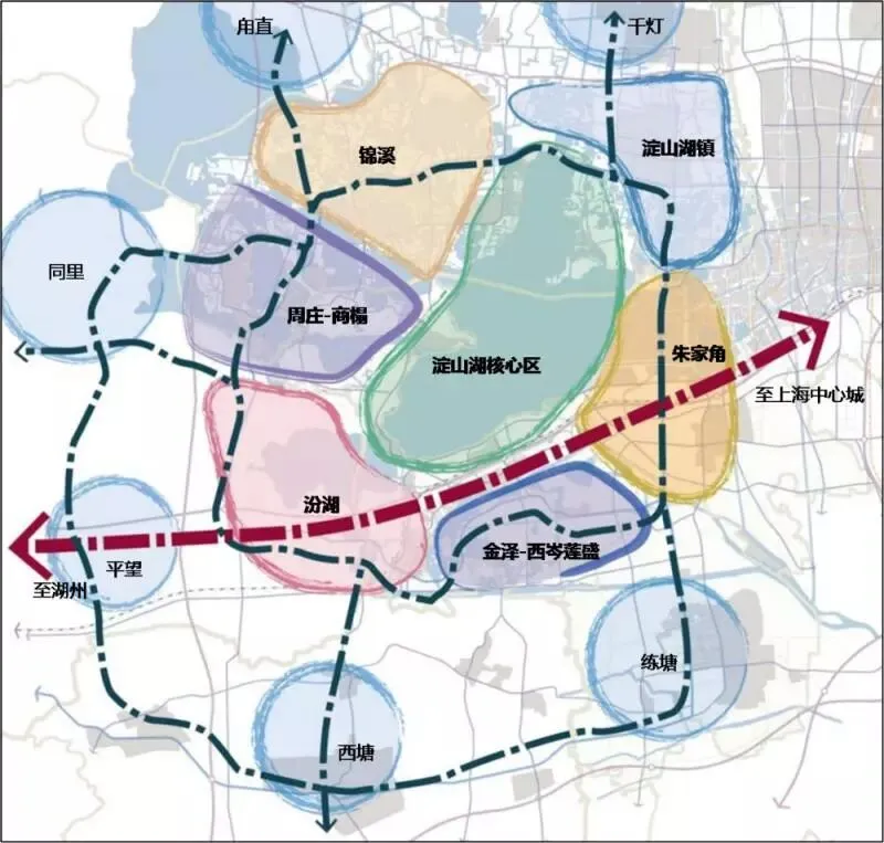 ▲环淀山湖游憩、文化、生态特色功能协调区和沪湖发展廊道
