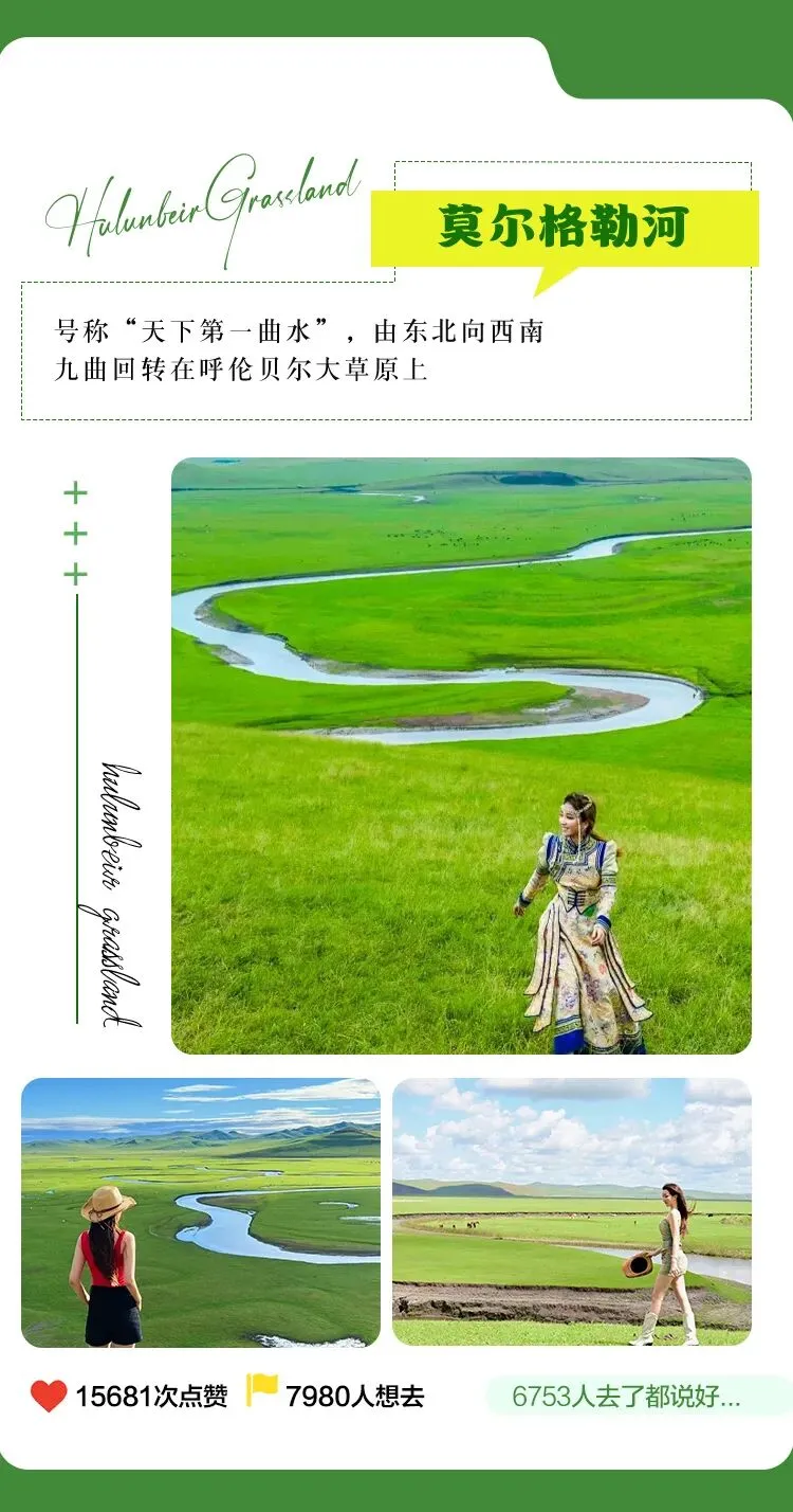 备注:莫日格勒河在发布行程时为免费景点,目前正在修建景区,收费时间暂不确定,行程费用未计算此景点门票,行程开始如有门票收费,客人需费用自理望悉知。