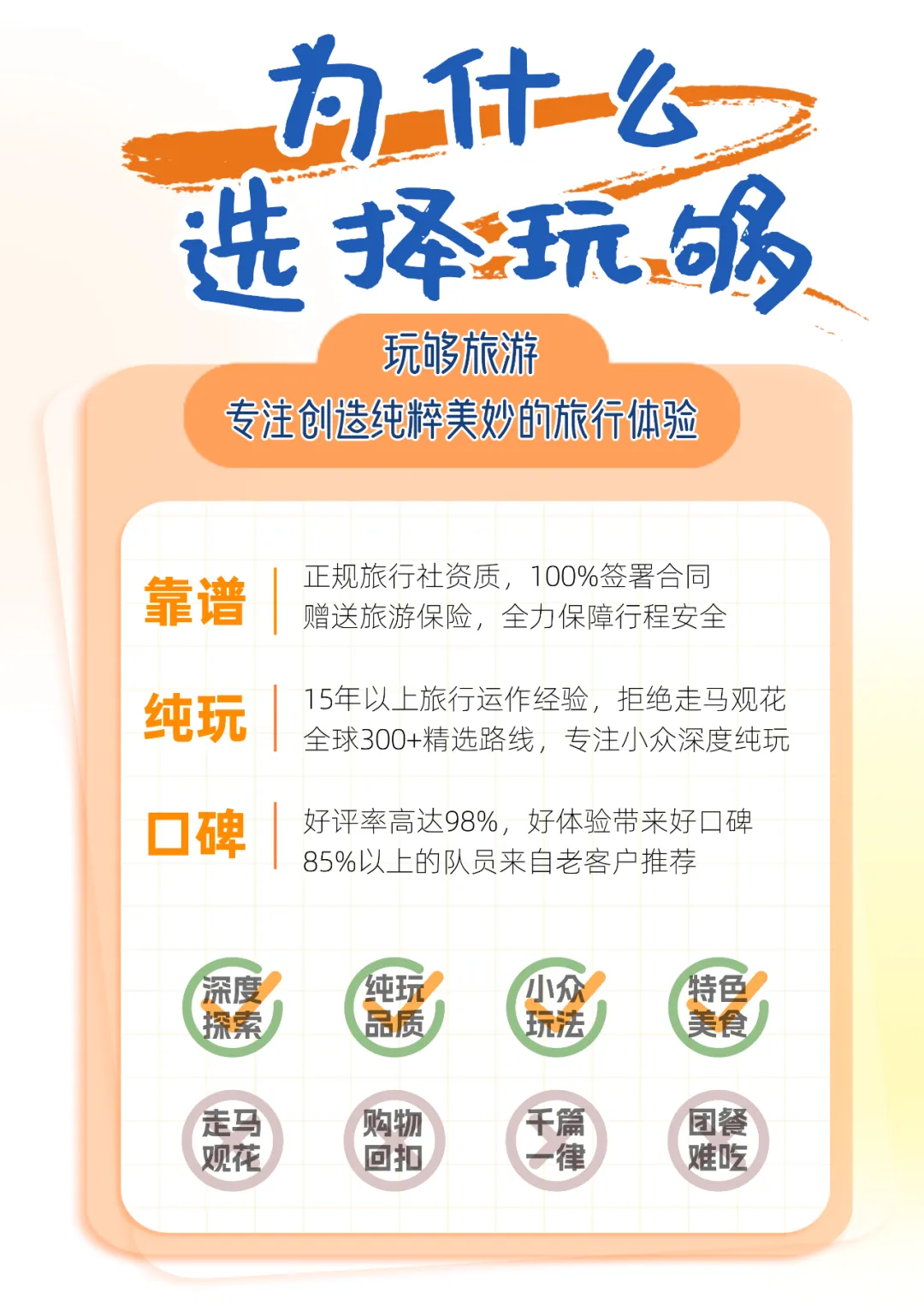 3、65周岁(含)以上老年人预订出行需确保身体健康适宜旅游,无心脑血管疾病、未做过大手术,签订免责协议,并有18-59周岁直系家属全程陪同出行,75周岁及以上老年人不可报名。
