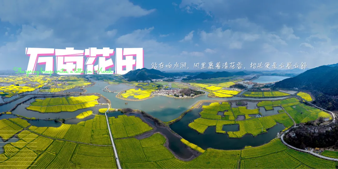 3至4月的响水涧,是江南春天的极致表达。万亩金黄的油菜花田,被碧水环绕,与远山相映。徜徉其间,风里裹着花香,抬头便是云卷云舒,每一步都踏在治愈的田园诗画里。