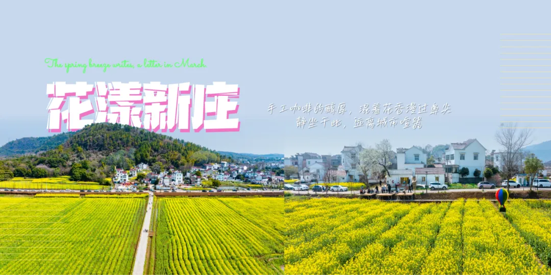 和美乡村新庄村与万亩油菜花海相拥,一步一景皆是江南村居的恬静与诗意。新庄花海,浮山为屏、水系纵横,春风拂过,花波涌动,春日限定的江南田园诗,尽在此间。