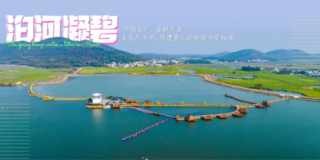 泊口河全长8公里,水域面积约1800亩,春日油菜花海环伺两岸,被称为“花海中的蓝丝带”。泊口河盛产各种鱼类,尤以野生翘嘴、鳜鱼等优质鱼种为最,是垂钓爱好者的理想天堂。泊口河路亚垂钓基地坐落河中央小岛,既是专业路亚赛事场地,也是亲子休闲、团建放松的田园水岸秘境。