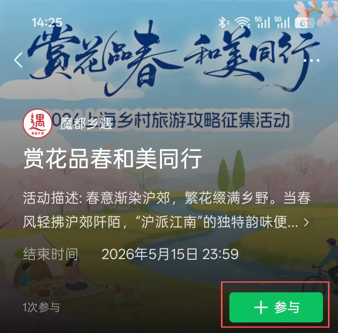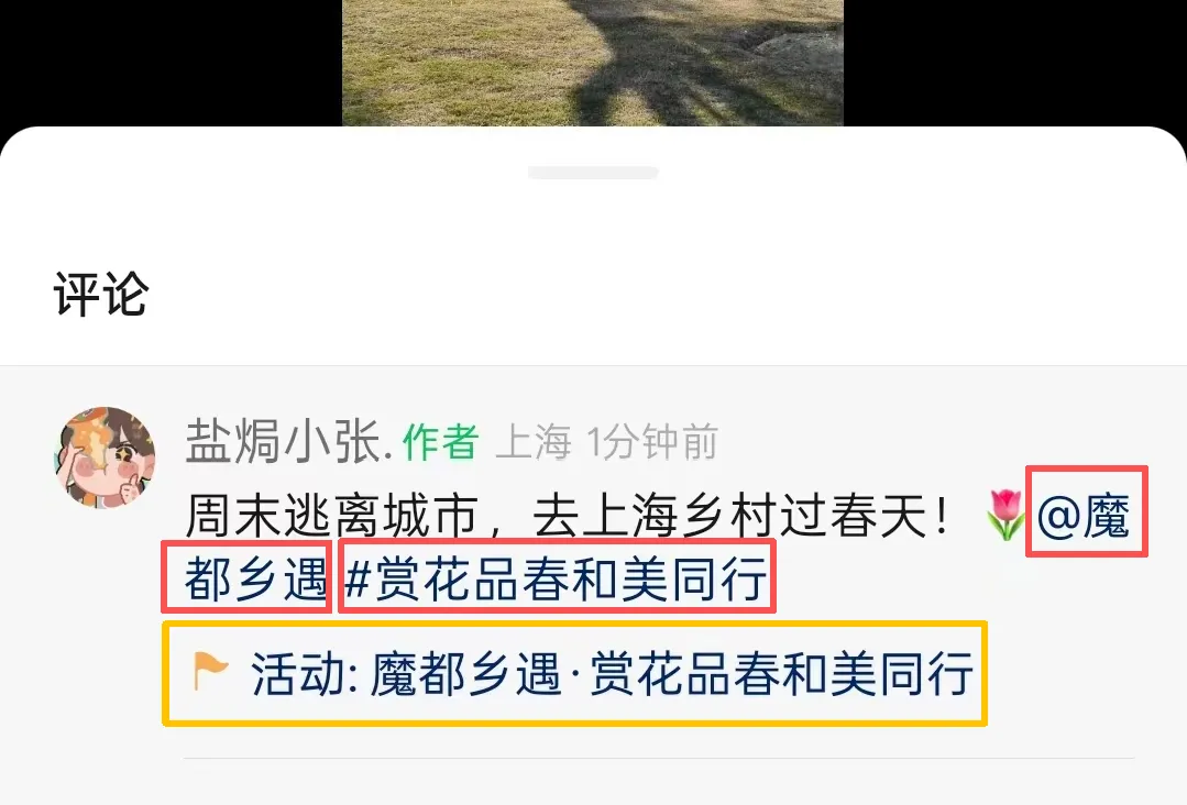 ③文案带话题#赏花品春和美同行 并@魔都乡遇 官方视频号,即成功参与!