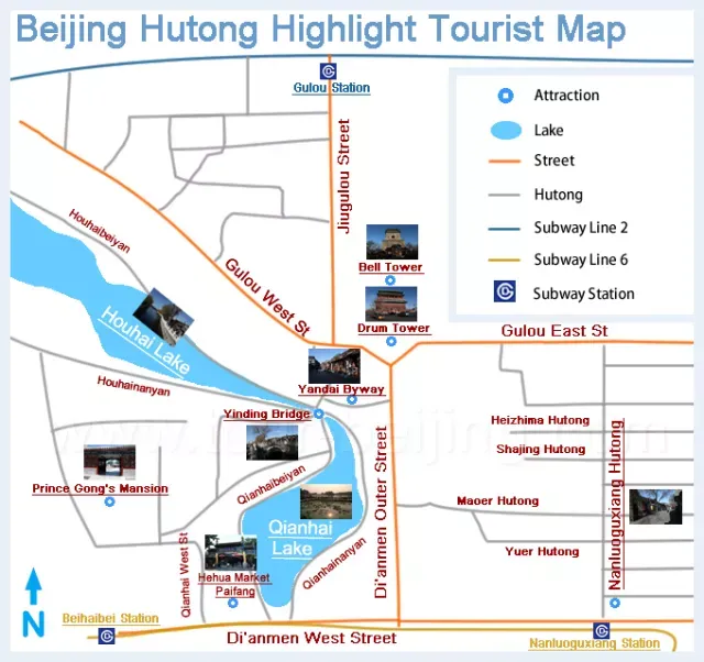 许多人都说北京的心脏跳动在胡同里。胡同区是中国的传统区,在这里能够探索到不同于现代化北京的地方。许多胡同都被拆毁了,但因其巨大的社会、旅游以及历史价值,现在已经出台了保护这些胡同的政策。在宝钞胡同,我们可以找到现代化,酒吧和现场音乐。南锣鼓巷胡同在夜晚是最多彩的,游览这个胡同是必不可少的!