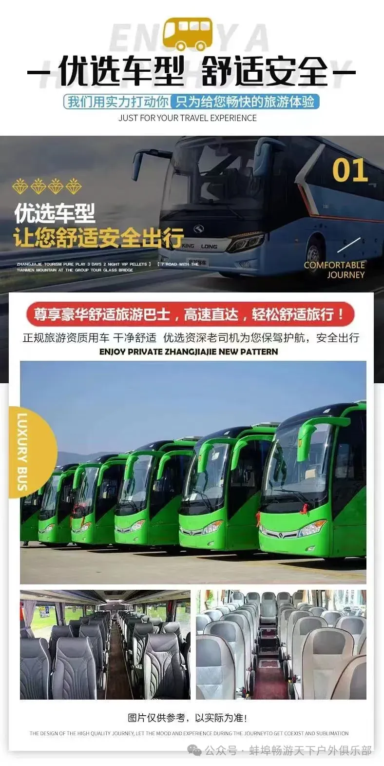 我们是具有独立组团权资质的正规旅游公司,手续齐全,合法经营;我们承租有营运资质和高额座位险的正规旅游大巴