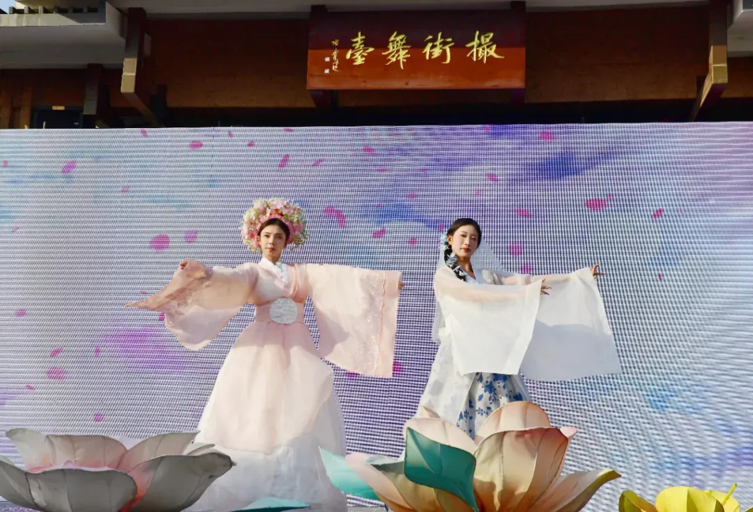相较于往届,本届簪花节跳出单一花事体验框架,全面升级为东方美学沉浸式文旅盛宴,创新推行“校企合作”新模式,携手安徽艺术职业学院师生团队,把专业课堂搬进古风街区,让青春活力与古典韵味碰撞交融,赋予传统簪花文化全新生命力。