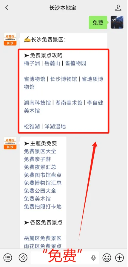 在【长沙本地宝】公众号对话框发送关键词: