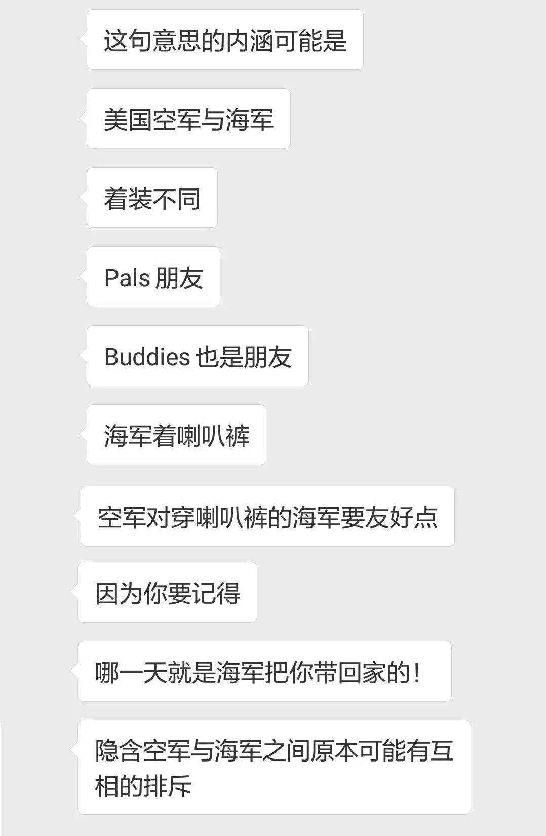 本文写作时,遇到如下“斜杠字”的困惑,在旅游手册里,这两行字用斜体单独标出,说明写旅游手册的美军文案者和最后的审核领导都是是很看重这句话的,苦于英语水平,得僵的,于是,我将这句话拿给家里两个读外语的同志看,一个说有两个生字表示也看不懂,一个说字面都懂的,但说不了解真正时代涵义。于是,再,我就把这句话微信给了一位大学英语系教授,她是我初中同学,上外英语系毕业。答案在文章最后揭晓,蛮有趣的。