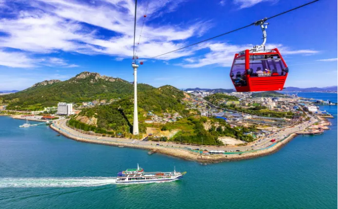 这是韩国最长的海上缆车之一,从北港到高下岛横跨大海。坐在缆车里,可以看到海岛、港口和城市的全景,景色非常震撼。透明水晶车厢更是拍照热门位置。