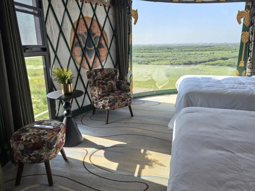 轻奢蒙古包:轻奢毡房、星空顶、有冷热空调,体验感强 ,24小时热水