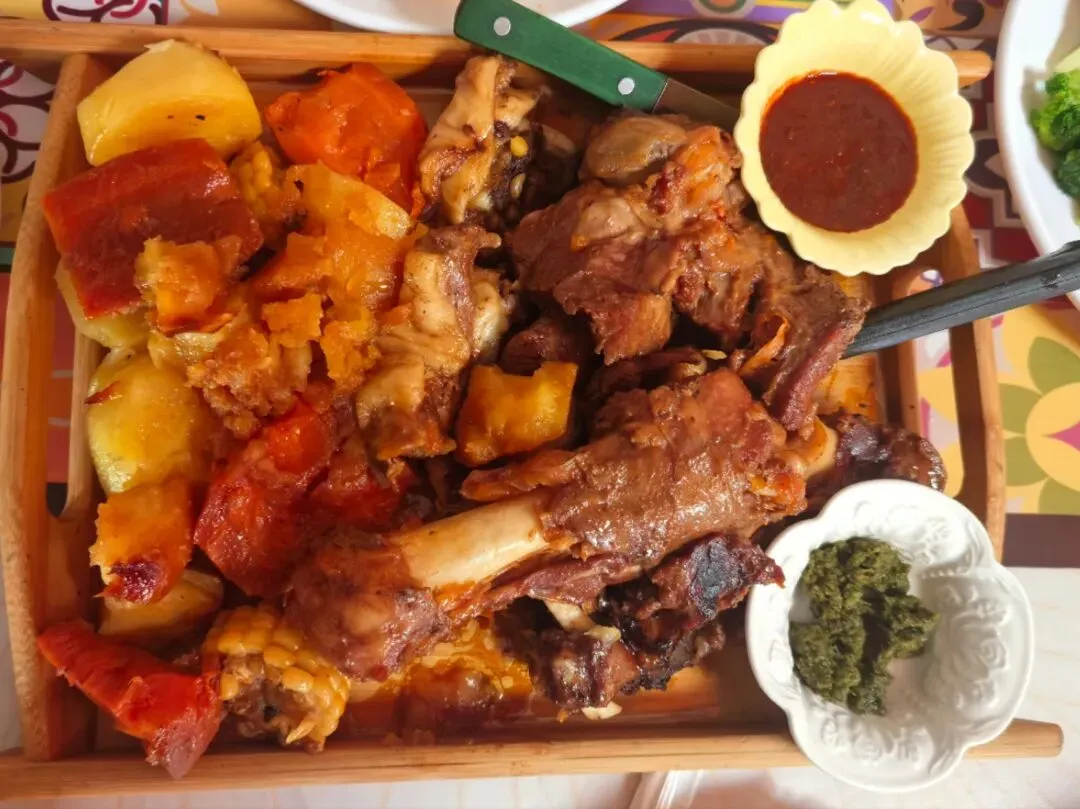 石头烤肉:石头焖烤,鲜嫩多汁