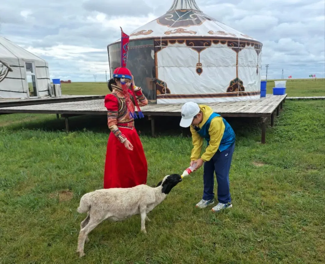上午:海拉尔出发→抵达牧场→蒙古袍拍照→喂小羊、挤牛奶
