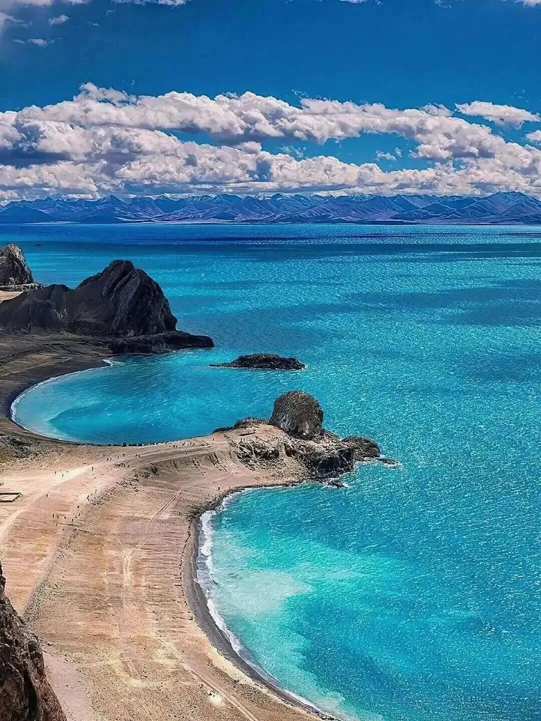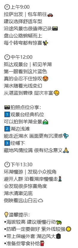 羊湖的.水蓝得不真实,像是有人把整片..空摁进了山里。沿着湖开.车,每个弯...色都不一样,从钴蓝到蒂芙.尼蓝。