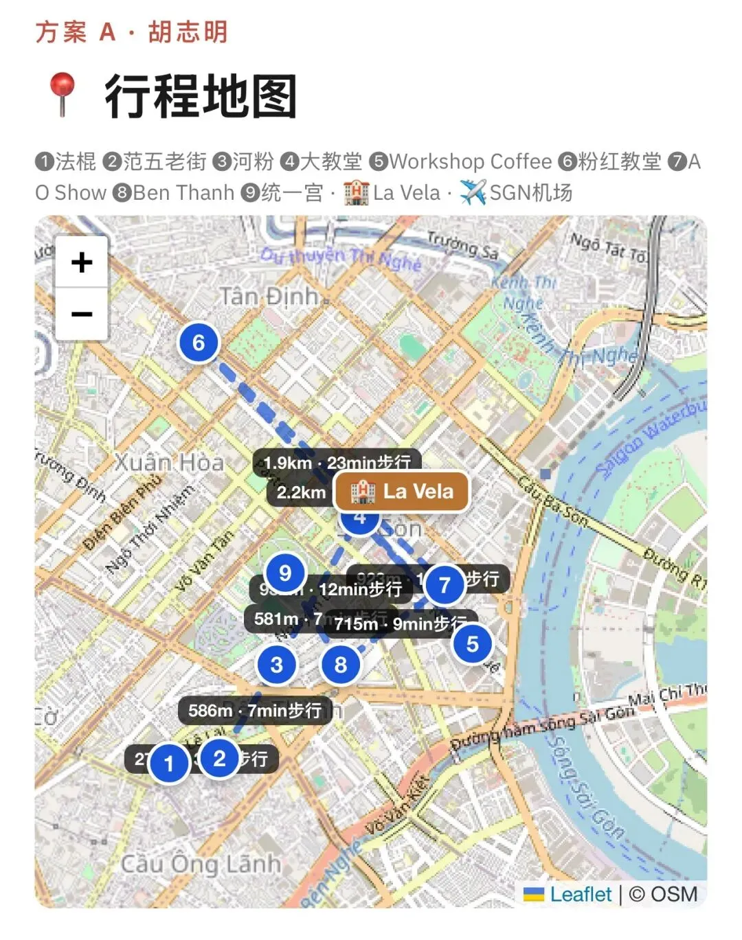 4. 接入地图:上帝视角的行程规划 纸上谈兵最容易累死在路上。🦞虾秘不光做好了行程规划,接入高德/Google Maps后,它把所有的网红店和景点都被标注在了地图上。酒店到景点的距离、耗时、打车路线一目了然。交互式的地图带来的 Beat Expectation 的掌控感,才是 Agent 的魅力。