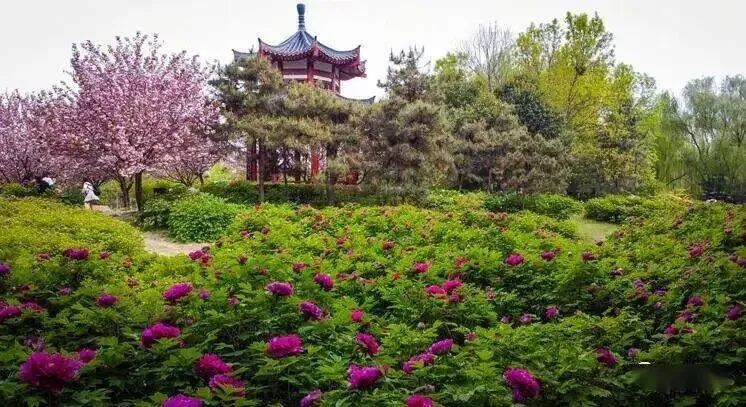 2、牡丹公园。作为老牌观赏地,这里的花开得最为热烈奔放。洛阳红的喜庆、二乔的双色奇绝、岛锦的绚丽,一簇簇、一团团,那是真正的“花开成海”,热闹得让人心生欢喜。