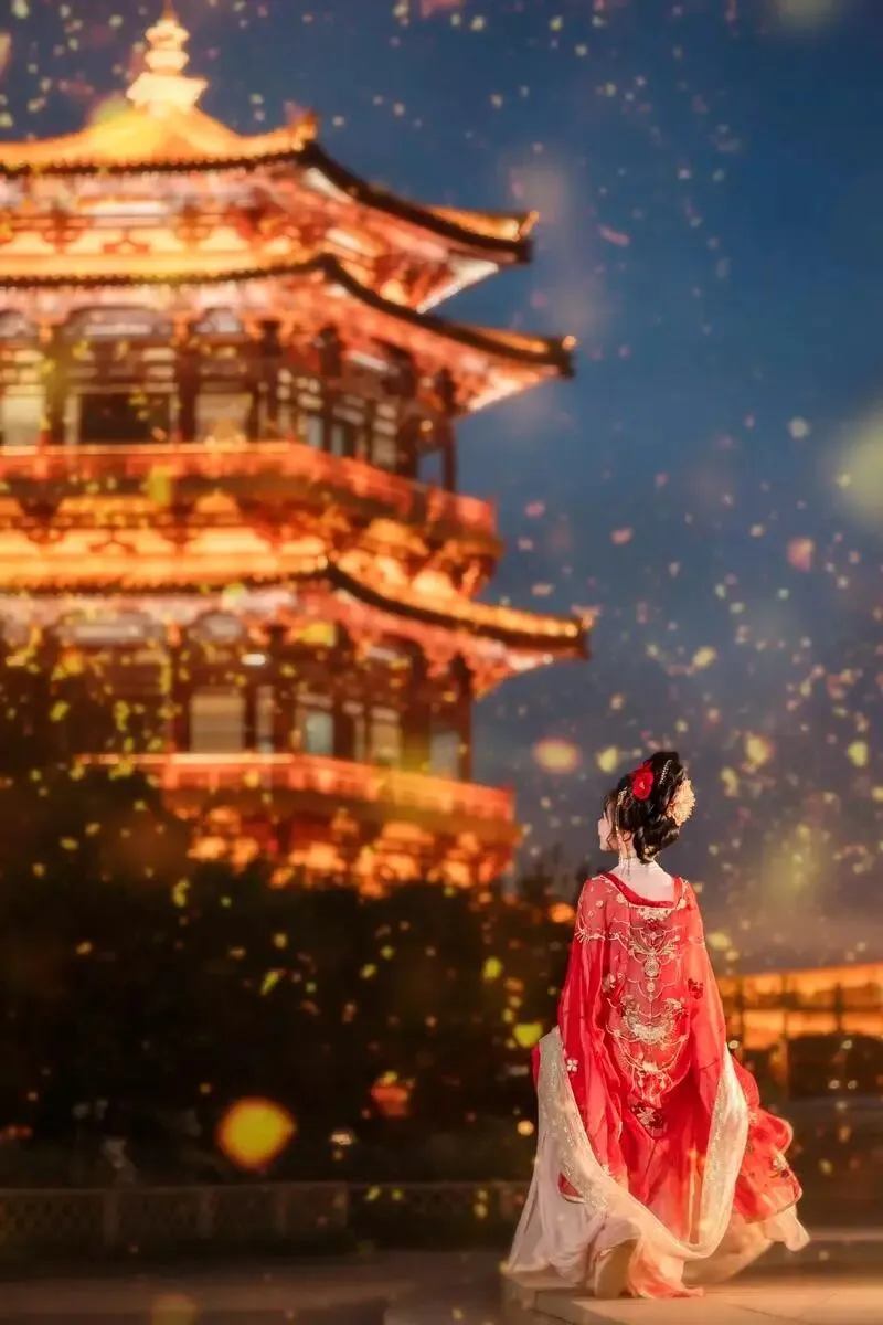 2、夜游九州池:白天的花海已足够惊艳,夜晚的隋唐遗址更是梦幻。当宫灯亮起,花海与光影交错,那一刻,你真的会恍惚自己是否穿越回了大唐盛世。