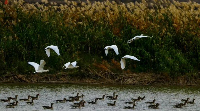 诸城的潍河湿地公园是那种你不会专门去,但路过了一定会停下来的地方。这里的湿地生态保持得很好,芦苇荡、水鸟群、野生植物构成了一个完整的湿地生态系统,你沿着木栈道走,能看到水面上不时有鸟掠过,如果运气好,还能看到白鹭成群停在浅滩上觅食。