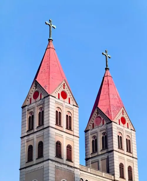 这座教堂是1934年建的,德国人设计,红色的屋顶、黄色的墙面、两座钟楼高高竖起来,从哪个角度看都是青岛老城区的视觉焦点,但它真正打动人的地方不是外观,是那种一百年来从没变过的安静气质,你站在教堂门口,会感觉时间在这里是凝固的,周围的城市可以变、人可以换,但这座教堂还是那个样子,还是那个作用,这种稳定感在快速发展的城市里很少见。如果你赶上弥撒时间,可以进去坐一会,不用信教,就听听管风琴的声音、看看阳光透过彩色玻璃打在地上的影子,你会觉得这一刻很值得停下来。