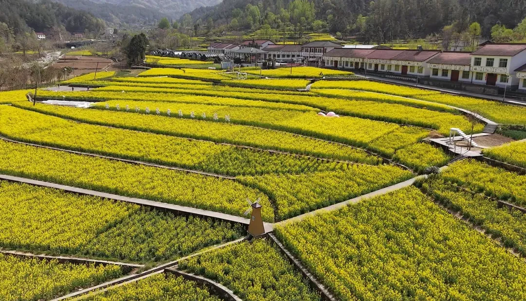 老君镇皇塘村作为启动仪式举办地,早已被金黄花海包裹,30公里观花环线串联起皇塘、杜家坝、毛堰等6个观花点,沿线油菜种植总面积为5000余亩,漫步观花步道,远眺青山映花海,近赏蜂蝶逐花飞,随手一拍都是春日大片。