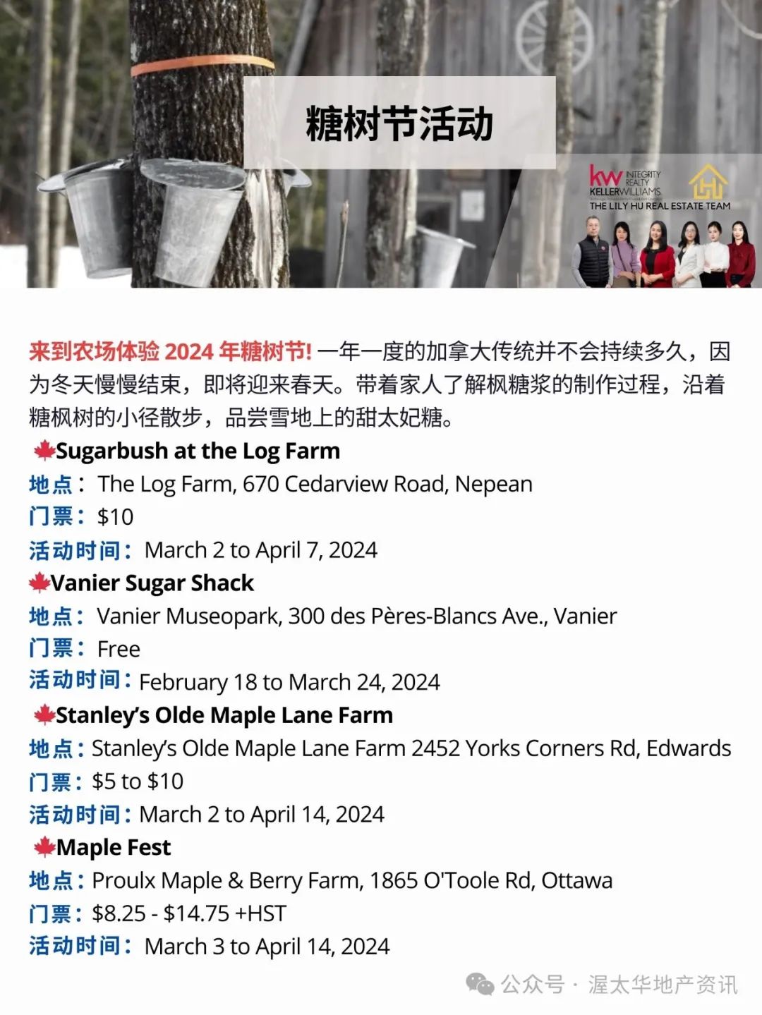本周迎来我们OTTAWA周末游的第五十期啦~第50期首推必须是我们莉程地产独家冠名的渥太华首场华人脱口秀——张骏《非常棒的选择》,保你在女神节笑声不断~冬去春来,季节限定的糖树节活动也在全城各大农场展开,开放时间有限,想去的朋友不要错过~渥太华和加蒂诺本周末的啤酒节活动也值得期待!精彩纷呈,等你来参加!大家一起动身享受精彩生活吧!
