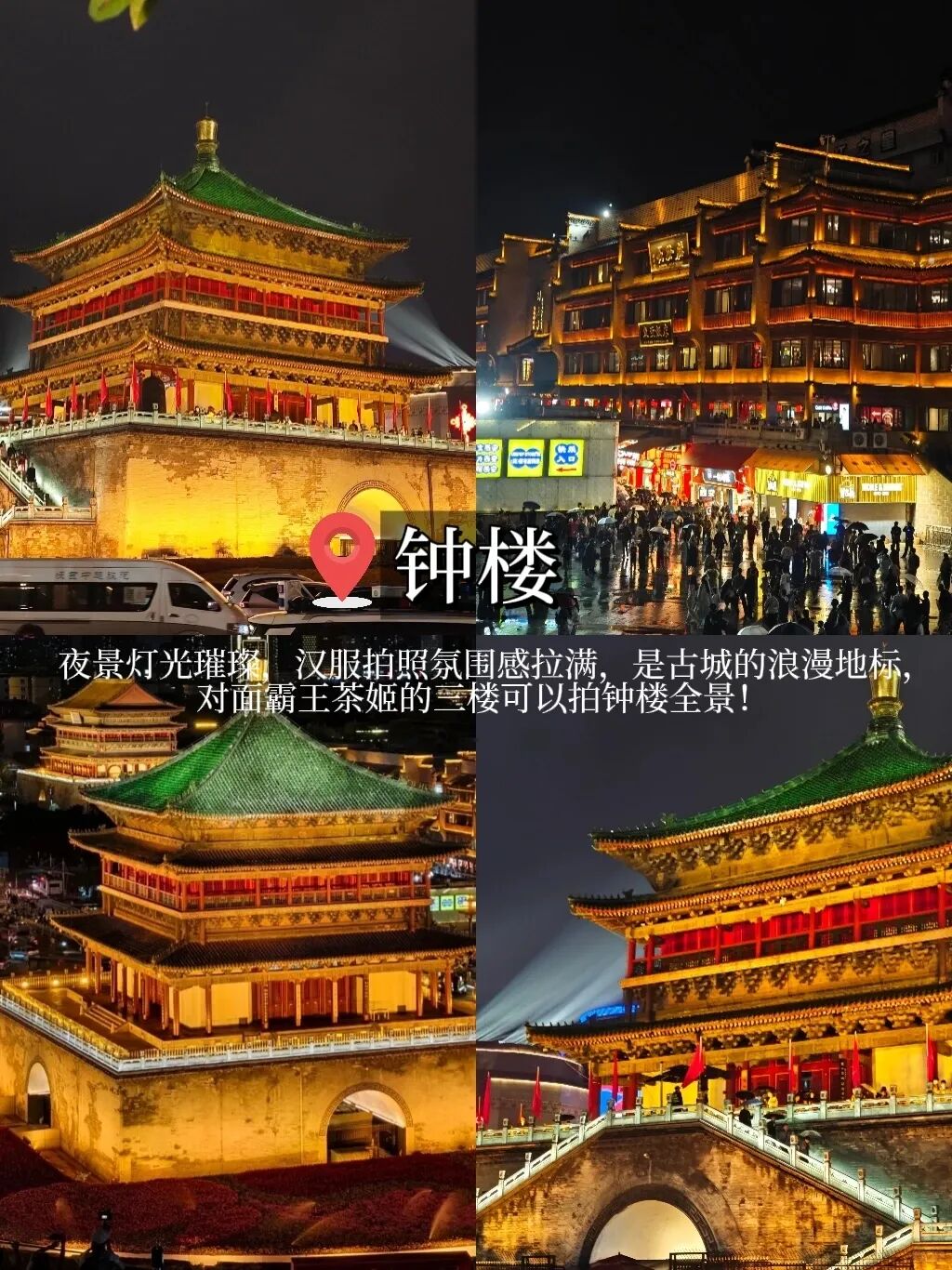 路线:西安钟楼→西安鼓楼→西安城墙→回民街→高家大院(赛格→湘子庙→德福巷)