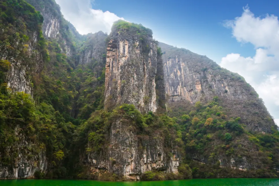 峡谷是神农溪的核心底色,溪流全长60公里,自北向南汇入长江,串联起四段风格迥异的绝美峡谷,勾勒出鄂西山水的极致风骨。龙昌峡以 “雄” 著称,绝壁对峙、最窄处不足20米,堪称 “水上夔门”;鹦鹉峡以 “秀” 见长,7.5公里峡谷植被覆盖率超85%,四季葱郁,野生猕猴、金丝燕常伴左右;神农峡以 “奇” 闻名,奇峰怪石、飞瀑流泉遍布,藏着远古地质遗迹与千年人文传说;绵竹峡(暂未开放)以 “险” 为特色,滩多水急、峡谷幽深,是解锁原生态山水趣味的绝佳去处。