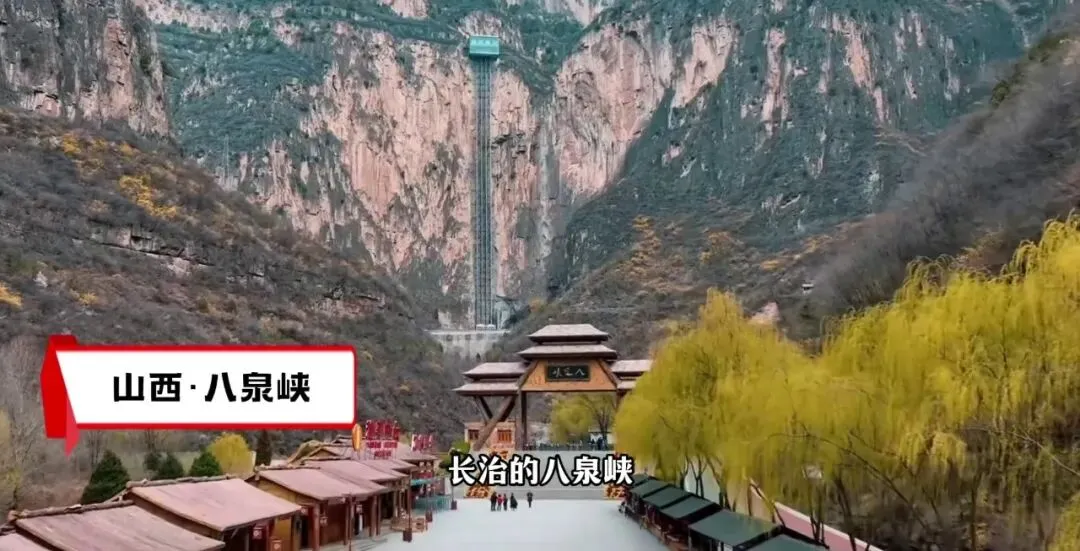 28-八泉峡的高峡平湖景观与户外百米电梯。