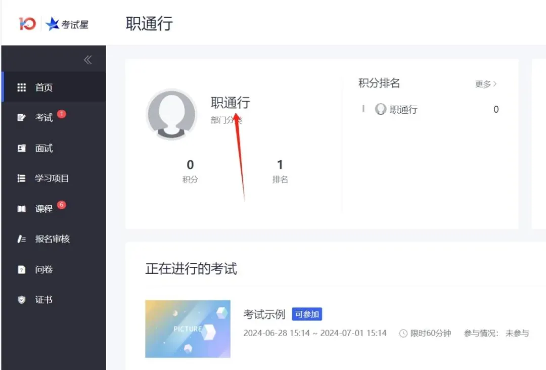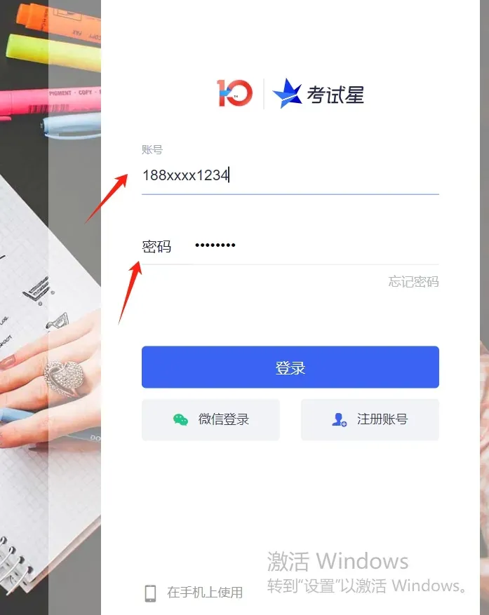 1、浏览器搜索“考试星”点击登录,填写个人账号即可(培训完毕后,学员会收到相应的考试信息及考试链接,获取个人